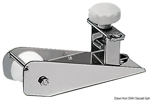In acciaio inox 304, finitura Chromelux®, completo di puleggia in nylon e spina di sicurezza superiore.