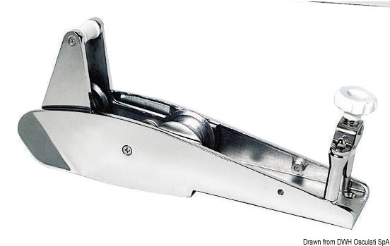Fuso in acciaio inox AISI 316 lucidato a specchio. Ampio sbalzo per evitare che qualsiasi tipo di ancora tocchi la prua. Pulegge in acciaio inox, adatto per ancore CQR, Bruce, Danforth, Trefoil®, Delta ecc.
