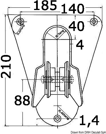 Musone con puleggia in nylon. Si applica al frontale in vetroresina del battello.