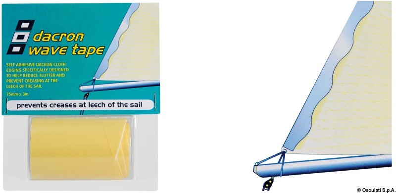 Nastro autoadesivo in dacronR progettato per rinforzare le zone usurate delle vele (esempio la balumina della randa) che sotto vento, essendo snervate, tendono a sbattere riducendo in maniera significativa la resa.