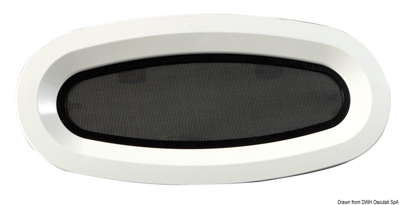 Carcassa in nylon con ghiera esterna di finitura e zanzariera. Fermi regolabili. Vetro acrilico fumè. Fissaggio con viti invisibili. Spessore murata 6-35 mm. Omologato CE.