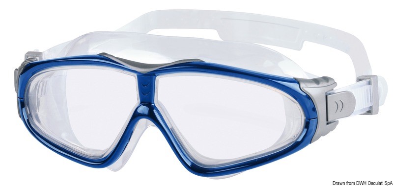 Occhialini con facciale monovolume, come le maschere subacquee, ma privi dell’alloggiamento per il naso. Dotati di corpo in silicone e lenti in policarbonato, sono ideali per il nuoto in mare e in piscina. Disponibili in colori assortiti: Blu, Nero, Grigio.