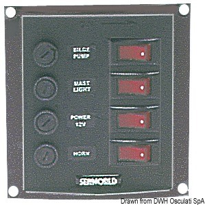 Con interruttore a bascula luminosi. Ignifugo, stampato a iniezione di colore nero.