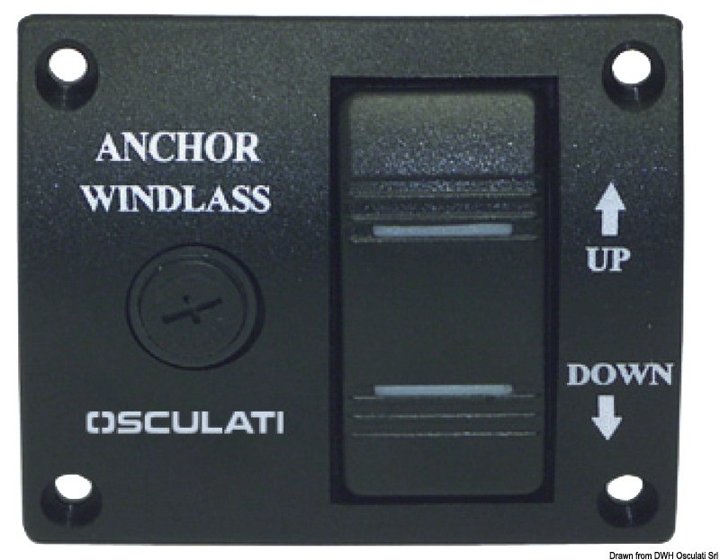 Interruttore con comando a bascula e doppio LED di controllo UP-DOWN.Non comanda direttamente il verricello, ma va collegato ad un teleruttore.
