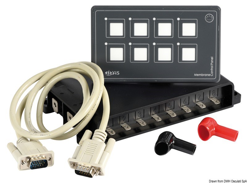 1 - Pannello di comando ultra piatto, spessore 4 mm autoadesivo. Completo di LED di controllo, numerazione base e di doppi adesivi con simboli e scritte da sostituire ai numeri.
