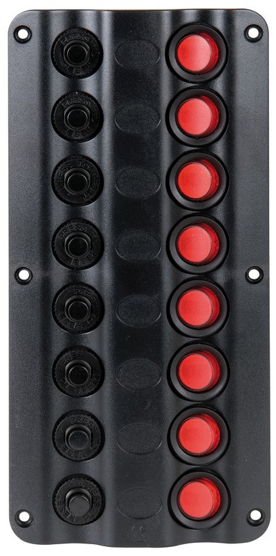 Fabbricati in plastica nera, sono completi di interruttori a bascula e fusibili automatici termici riarmabili. Completi di adesivi per identificare le varie utenze.