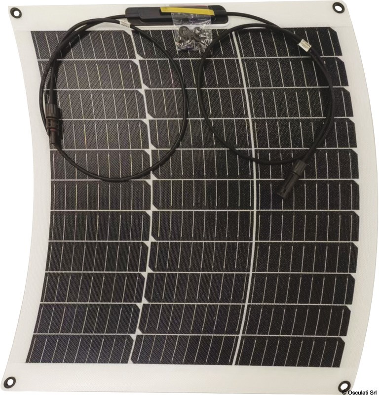 Fabbricati con celle solari aerospaziali ad alta performance. Sono pannelli di ultima generazione ultrasottili, e ultraflessibili. Efficienza celle mono 23%. Il pannello è composto da un sandwich formato da un supporto plastico + celle solari + rivestimento superficiale in resina epossidico UV resistente. Il fissaggio avviene tramite biadesivo. Cavo di connessione con spina MC4 incluso.