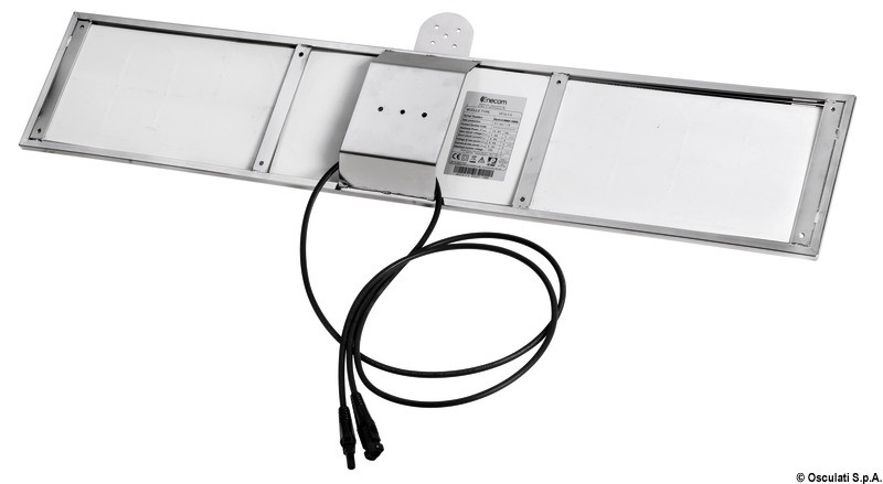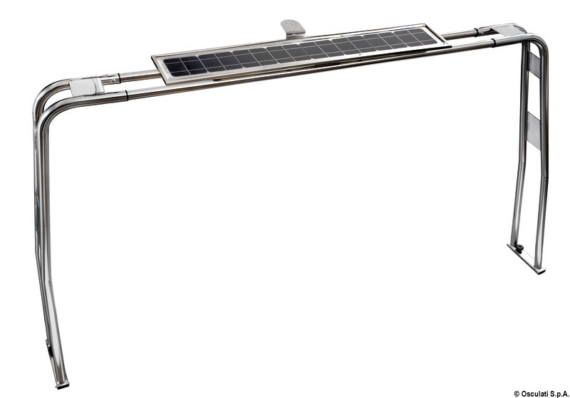 Telaio da fissare unicamente nella parte centrale del Roll Bar. Modello universale. Completo di supporto per montare fanale di via. Ingombro telaio 1100x180 mm. Completo di 4 m di cavo elettrico solare, regolatore di carica 12.035.01 e due connettori 12.034.09.