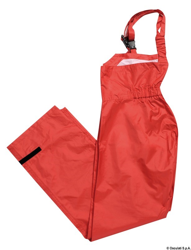 Pantalone alto: bretelle regolabili con allaccio rapido, caviglie regolabili, vita con elastico.