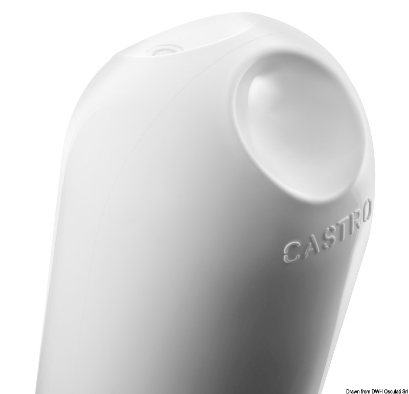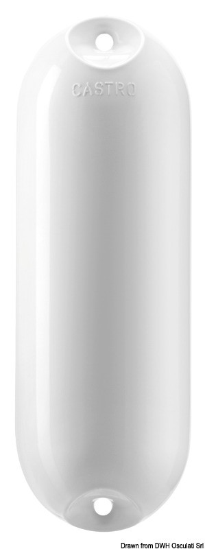 Serie con doppio occhio rinforzato per uso orizzontale e verticale. Il design consente una maggiore superficie di assorbenza agli urti a parità di lunghezza del parabordo. Finitura lucida con elevata resistenza all'abrasione e ai raggi UV.