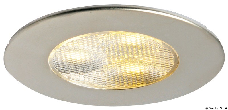 Corpo in acciaio inox. Lente in vetro satinato.