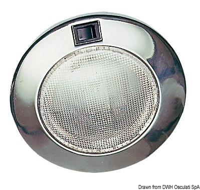 Corpo in acciaio inox. Lente in vetro policarbonato lavorato dall'interno a "punta di diamante" per diffondere al meglio la luce.