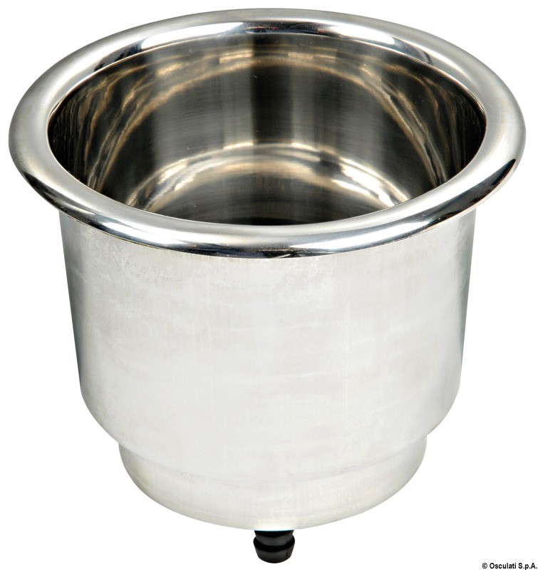 Realizzata in acciaio inox. Doppio diametro per contenere bottiglie e nuove lattine; foro di drenaggio con portagomma collegabile opzionalmente; morbido PVC sul fondo; bordo lucidato a specchio. Fornito con guarnizione autoadesiva per cui non necessita siliconatura velocizzando il montaggio.