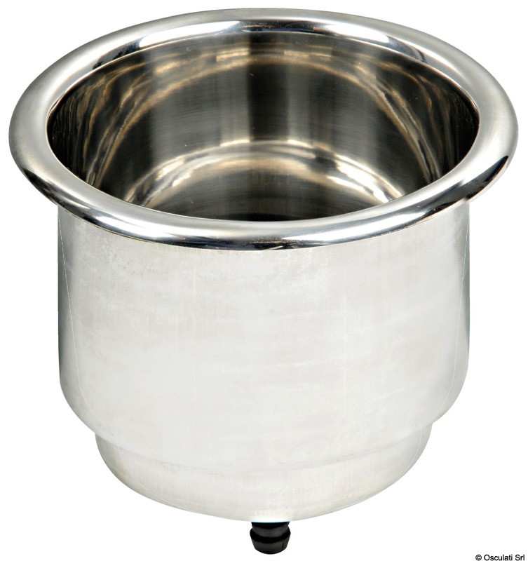 Realizzata in acciaio inox. Doppio diametro per contenere bottiglie e nuove lattine; foro di drenaggio con portagomma collegabile opzionalmente; morbido PVC sul fondo; bordo lucidato a specchio. Fornito con guarnizione autoadesiva per cui non necessita siliconatura velocizzando il montaggio.