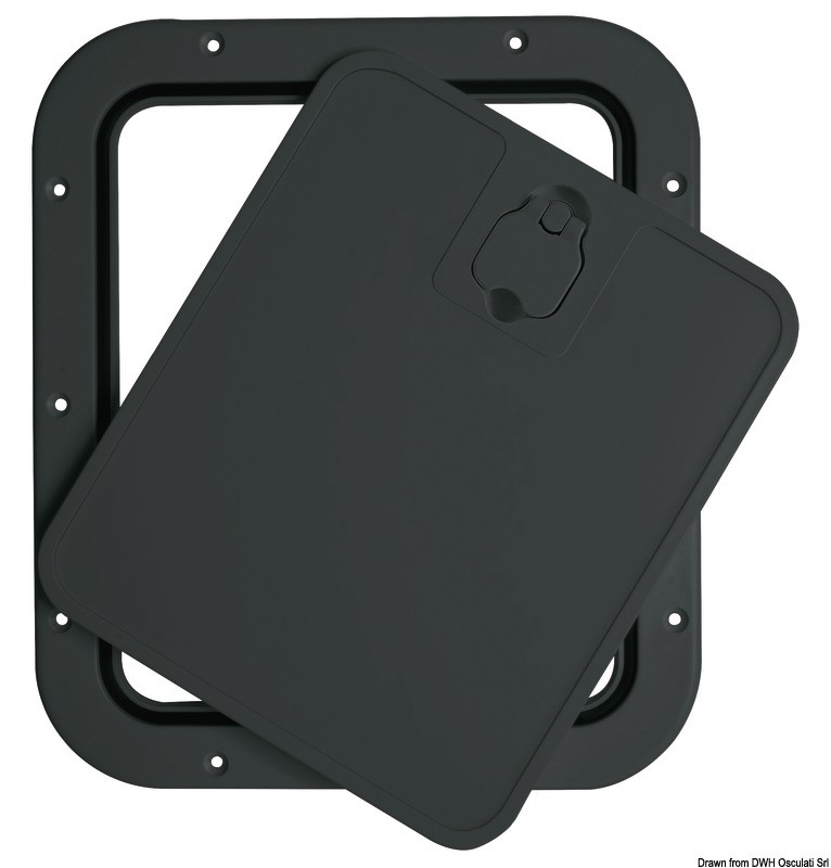 Superficie molto robusta e antisdrucciolo. Chiusura del coperchio Splash-Proof con guarnizione in neoprene. Montaggio a filo. Si possono usare come portelli per gavoni, vasche da pesca, oppure come portelli di ripostigli e paratie frontale a baionetta che si estrae per facilitare l'accesso. Ideale per installazioni in console con panca guida vicina.