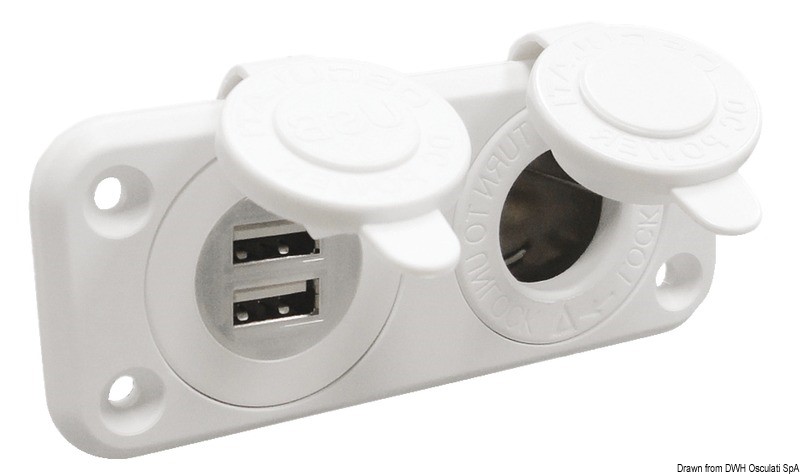 Fabbricate in nylon con cappuccio di protezione per renderle impermeabili. Ingresso 12/24 V. Uscita USB 5V.