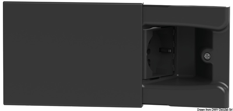 Il frutto è montato a 45° dietro lo sportellino scorrevole. Telaio a 3 moduli.