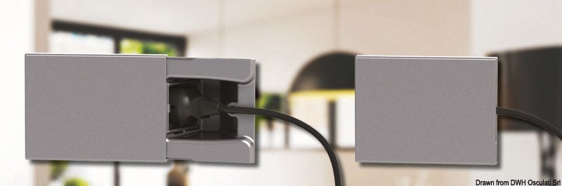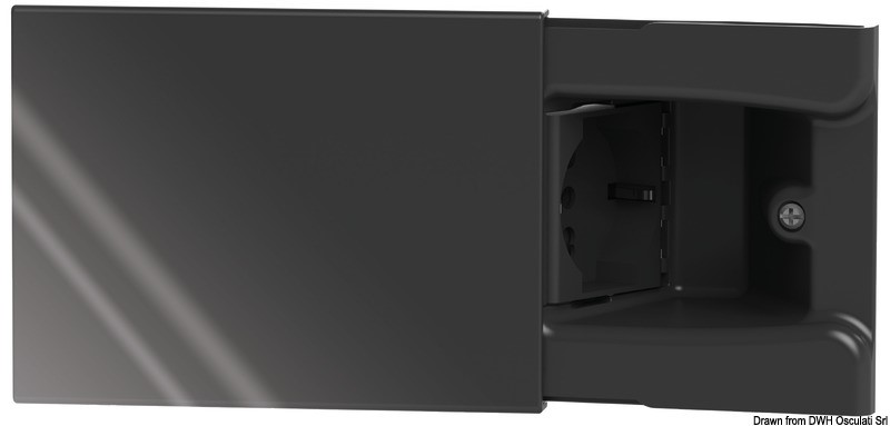 Il frutto è montato a 45° dietro lo sportellino scorrevole. Telaio a 3 moduli.