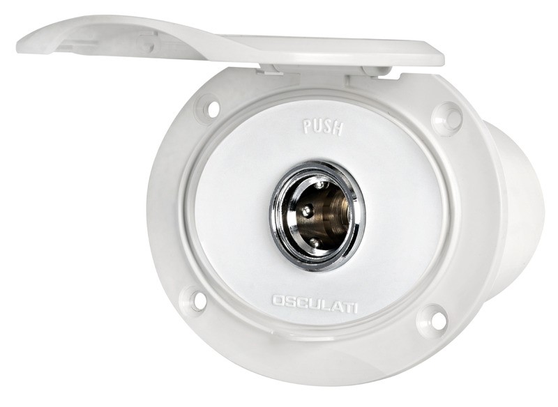 Si collega alla rete idrica di bordo (acqua dolce) o alla pompa Washdown (acqua salata) e mantiene in pressione la linea. Il tubo di lavaggio si innesta a scatto nella presa e fa automaticamente partire la pompa. Box in ASA resistente agli UV con inserto in acciaio inox AISI 316, meccanismo in ottone cromato.