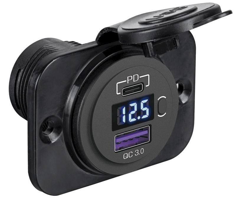 Descrizione Presa di corrente con doppia USB + voltmetro