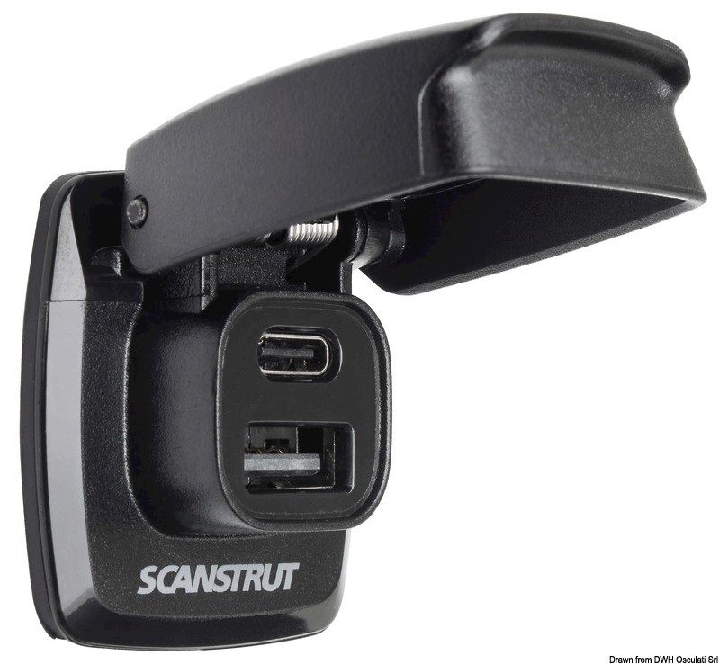 Presa stagna IPX4 quando chiusa. Di piccolissime dimensioni. Disponibile in 3 versione: prese USB A+C, presa corrente e versione combo (USB + presa corrente).