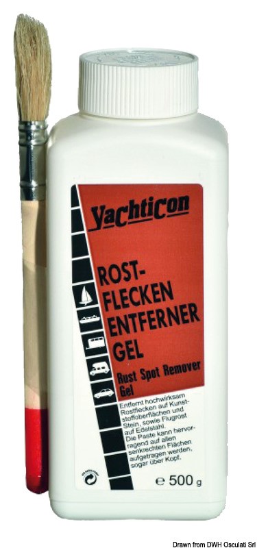 Gel specifico per togliere la ruggine da ogni superficie. Essendo un gel, è adatto anche per superfici verticali. Confezione da 500 ml.
