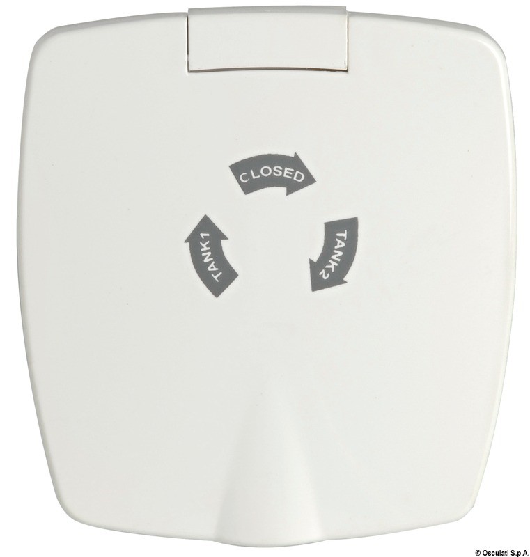Rubinetto a 3 vie per collegare due serbatoi ad un motore. Tre posizioni tank 1 / tank 2 / chiuso.