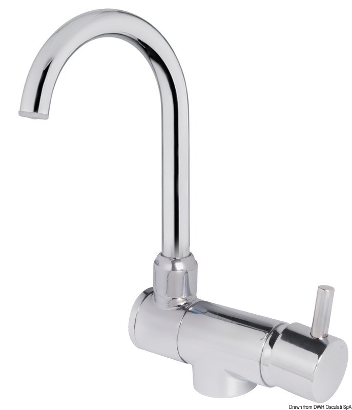 In ottone cromato. Può essere montato all'interno del lavello al fine di avere il piano completamente liscio. Possibilità di installazione su parete verticale.