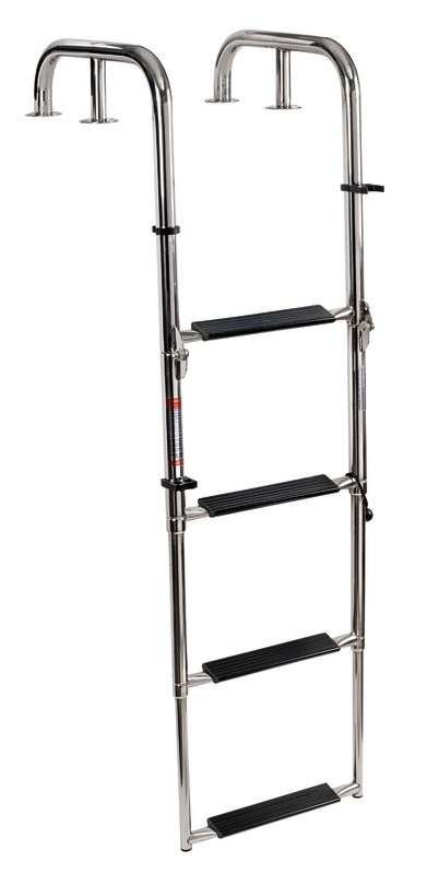 Scaletta telescopica compatta in acciaio inox 316, con maniglie superiori fisse e gradini antiscivolo per una salita sicura e confortevole. Il sistema a ribalta permette di richiuderla facilmente riducendo l’ingombro sulla plancetta.