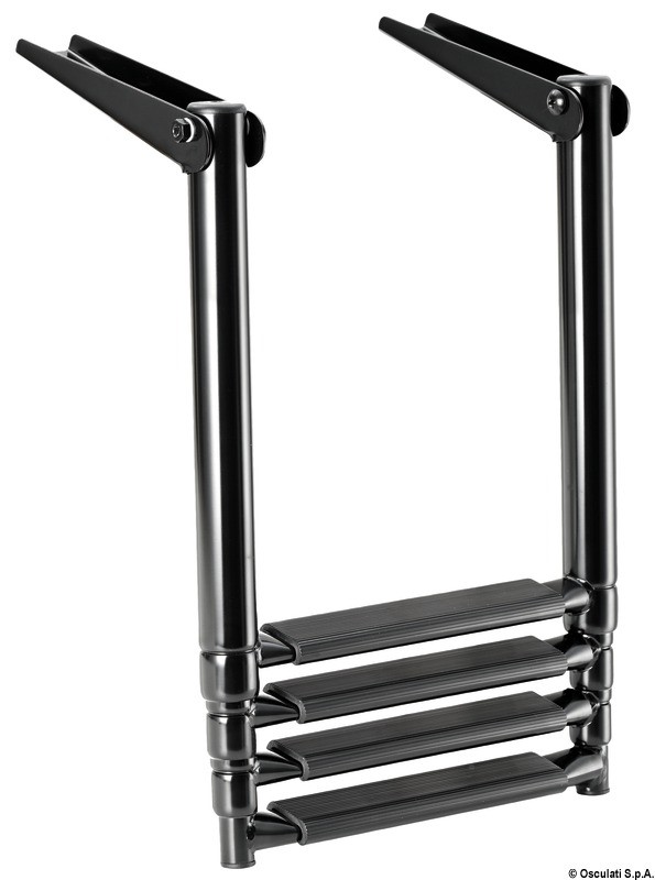Tramite un moderno processo industriale le scalette in acciaio inox vengono ricoperte in colore nero.Il processo è garantito 500 h di nebbia salina.