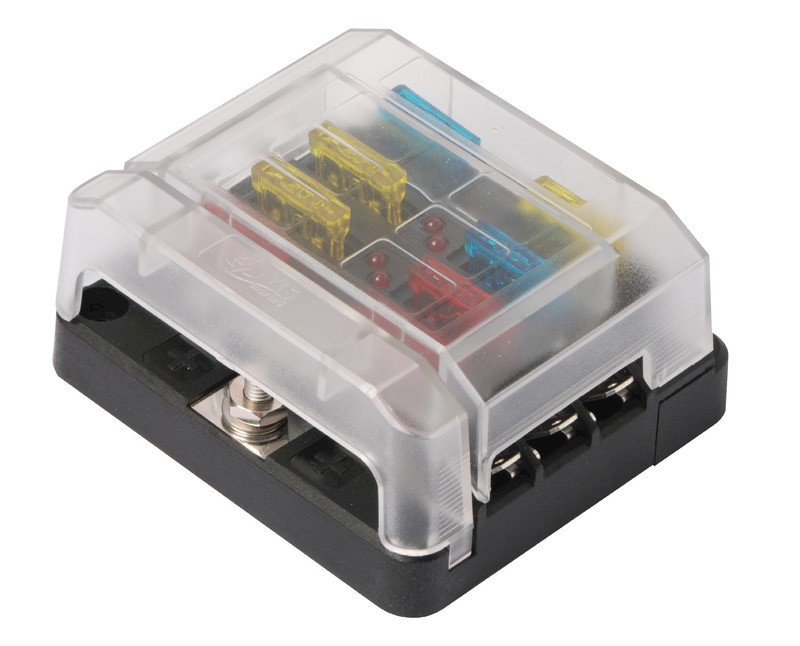 Accettano fusibili lamellari standard (ATP - ATO - ATC). Complete di LED di controllo su ogni fusibile. Voltaggio 12/24 V. Carico max cumulativo 100 A. Carico max singolo fusibile 20 A. Kit etichette adesive con varie scritte incluso nella confezione. Utilizzando i moduli base 1 e 2 è possibile comporre le combinazioni illustrate ed altre ancora. L'unico limite è il carico totale max dei portafusibili di 100 A.