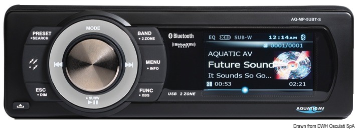 - altre caratteristiche: illuminazione del dock interno, 2 trigger esterni (12V DC, 350 mA), DSP EQ, bassi e acuti, balance/ fader, volume, ferramenta per il montaggio in acciaio inox.