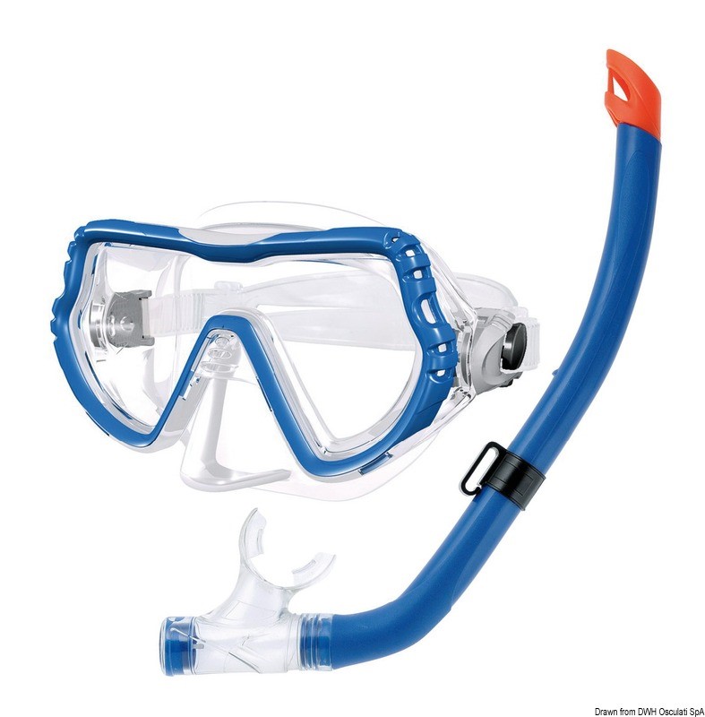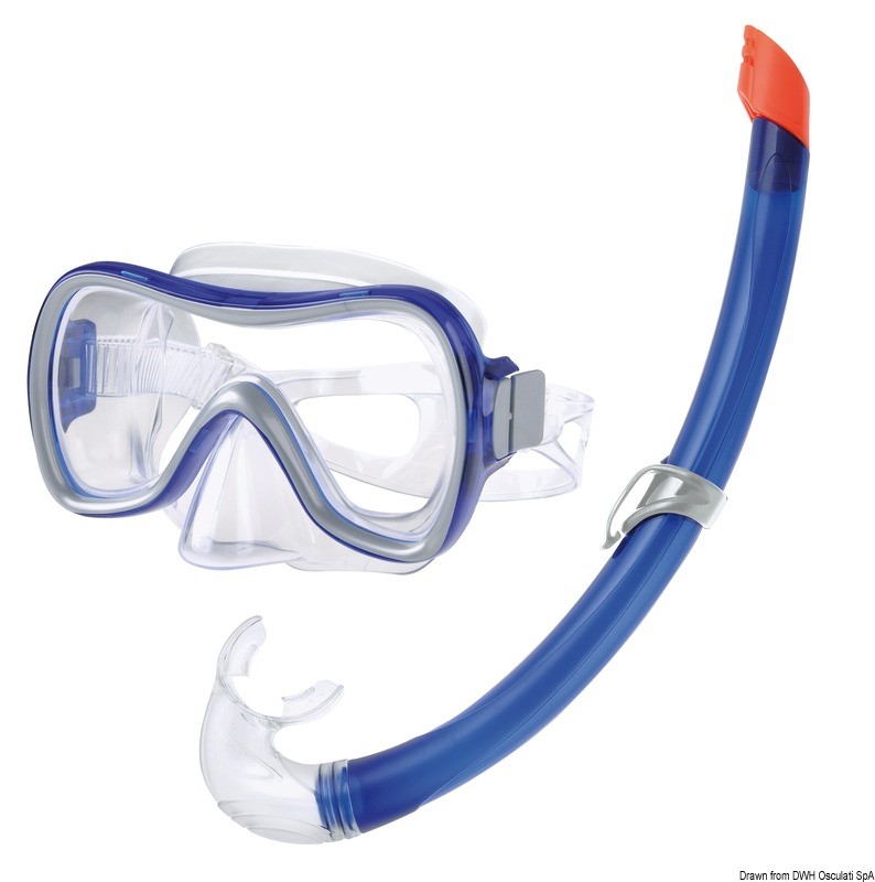 Set composto da maschera e boccaglio in PVC, adatto a chi si avvicina alla pratica subacquea. Disponibili in colori assortiti: Blu, Nero e Rosso.