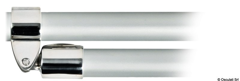 In acciaio inox AISI 316 lucidato a specchio. Questi snodi sono progettati per le grandi capottine, che prevedono una intelaiatura a 3 archi.