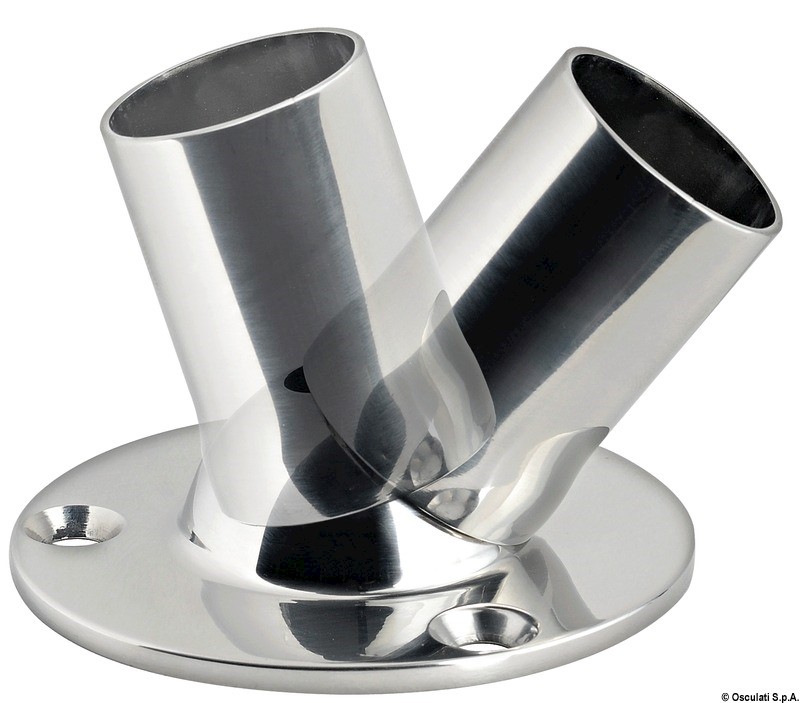 Calzano all'esterno del tubo. Fissaggio con 3 viti. Acciaio inox AISI 316 lucidato a specchio.