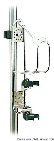 Per salvagente anulari o a ferro di cavallo. Modello universale. Si può installare su piano, su paratia, oppure su tubi inox del Ø di 22/25 mm diritti o inclinati, tramite un’apposita staffa in nylon ruotante, completo di elastico di fermo. Versione semplice o completa di supporto per boetta luminosa Art. 30.584.01.
