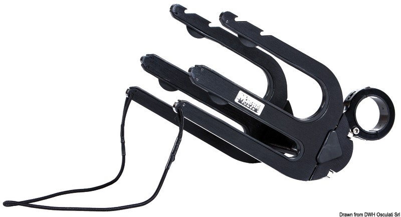 Bracci in alluminio e staffe in acciaio inox 303. Protezioni in gomma per proteggere le tavole e la barca. Elastici UV resistenti per fissare le tavole.