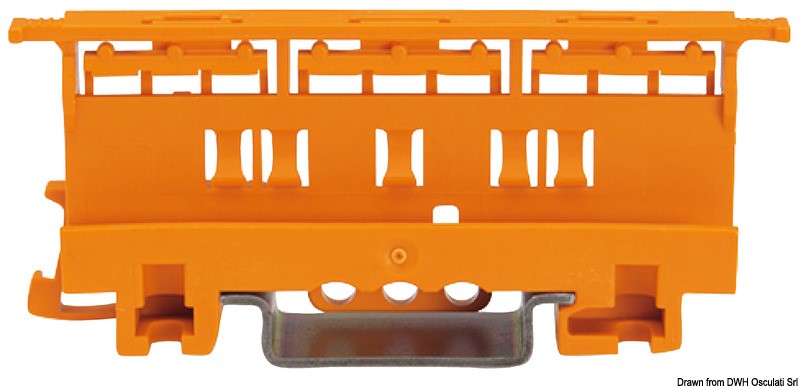 I supporti di montaggio permettono l'installazione dei morsetti di giunzione serie 221 (2, 3 e 5 poli) sia in orizzontale che in verticale, il supporto si può fissare in modo semplice, direttamente sulla guida DIN oppure con viti per montaggio diretto.