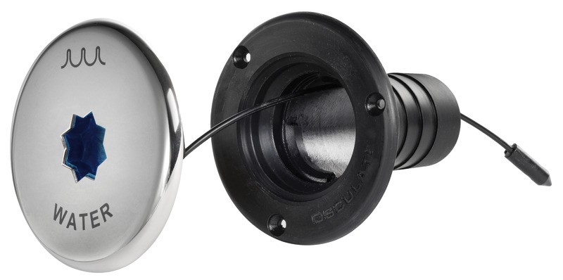 Corpo in tecnopolimero e copertura costampata in acciaio inox lucidata a specchio.