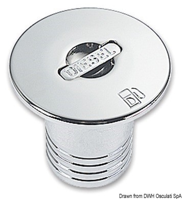 Speciale sistema di apertura che evita l’uso di chiavi, monete od altro. Progettati in modo che il tappo mascheri completamente la flangia avvitata, migliorando la tenuta dell’acqua. Versione con canotto di raccordo dritto o inclinato a 30° (da utilizzare quando il piano di rifornimento é inclinato, conforme ISO 8099/1). Completi di catenella interna, Ø massimo 88 mm. Sono tutti regolamentari RINA.