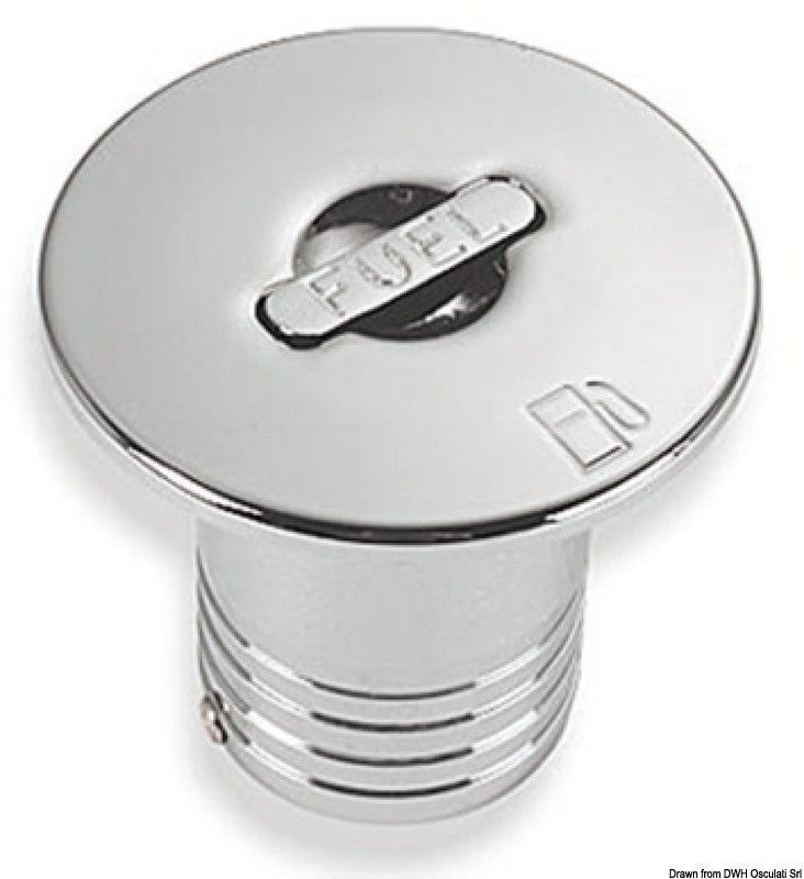 Speciale sistema di apertura che evita l’uso di chiavi, monete od altro. Progettati in modo che il tappo mascheri completamente la flangia avvitata, migliorando la tenuta dell’acqua. Versione con canotto di raccordo dritto o inclinato a 30° (da utilizzare quando il piano di rifornimento é inclinato, conforme ISO 8099/1). Completi di catenella interna, Ø massimo 88 mm. Sono tutti regolamentari RINA.