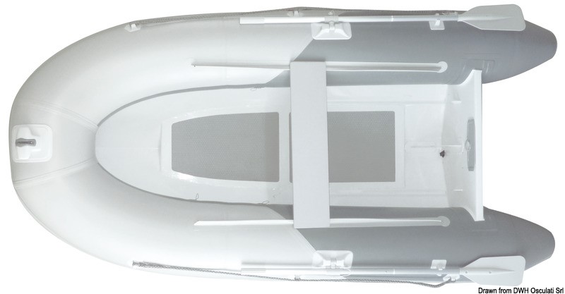 Gommone realizzato in materiale Mehler®. Molto resistente, ma con un peso contenuto. Buone prestazioni anche con basse potenze. Fornito completo di remi, gonfiatore e kit di riparazione.