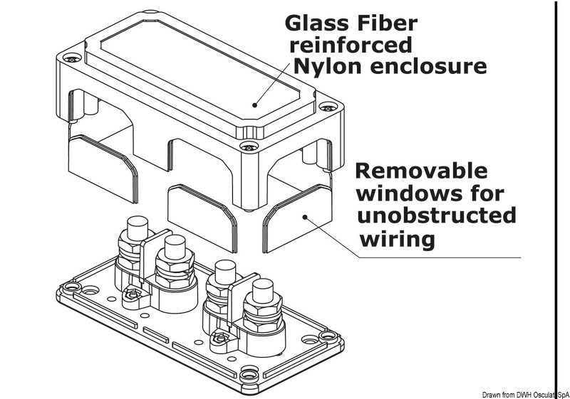 Fabbricato in nylon/fibra di vetro. Possibilità di far passare i cavi sui 4 lati.