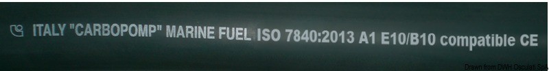 A norme CE omologata RINA ISO 7840/2021in classe A1 (la classe A2 di qualità inferiore, non é permessa per la benzina, ma solo per il gasolio). Omologata RINA+LLOYD'S. Rinforzi di tessuti sintetici. Superficie liscia ad impressione tela.