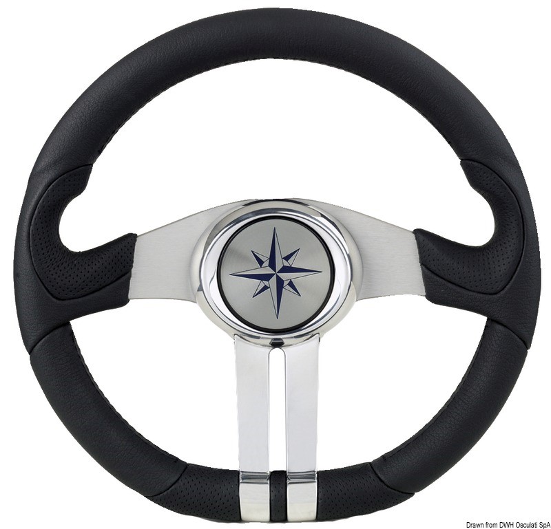 In poliretano morbido, razze l.l. satinate + cromate. Completi di mozzo centrale universale.