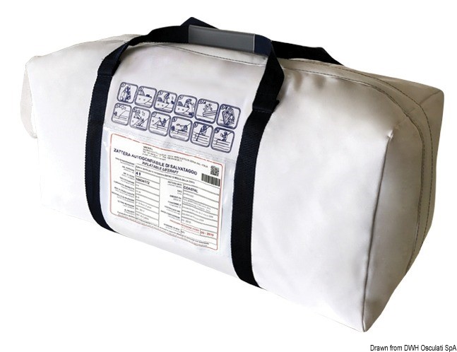 Per navigazione oltre 12 miglia.Conformi al D.M. 12/8/2002, approvate con D.M. 832/2004 del 10/3/2003. Revisione biennale. Versione con contenitore rigido o sacca morbida.