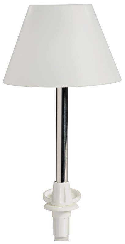 L’alimentazione arriva tramite le basette 13.440.10/16 (vendute separatamente). Asta in acciaio inox con innesto a scatto. Abat-jour in materiale plastico.