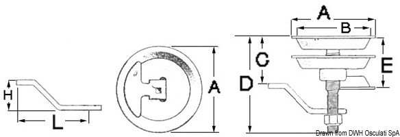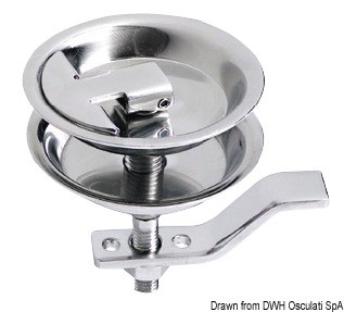 In acciaio inox AISI 316 lucidato a specchio, completo di contro flangia di fissaggio, nessuna vite a vista, bloccaggio tramite rotazione a 90° della maniglia: completo di leva di fermo angolata + battuta.