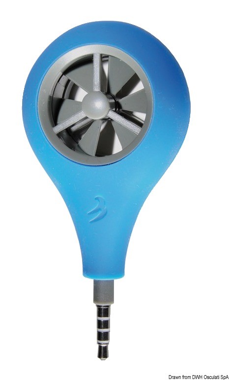 Piccolo ma preciso strumento che permette di trasformare il proprio dispositivo in un rilevatore di informazioni utili per la navigazione di tutti i giorni. Funziona con iPhone, iPad, iPod e Smartphone / Tablet Android ma richiede sistemi operativi minimi iOS6.0 o Android 4.3 .Si inserisce direttamente nella presa audio ed è pronto all'uso. Errore max ± 0,5% o 0,1 m/s. Range da 0,1 a 56 m/s. Scala m/s, Beaufort, nodi, mph. Memorizza la velocità del vento (media e max) e direzione. Rivestimento in gomma antiurto.