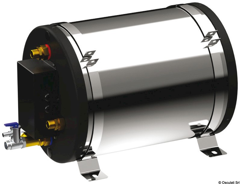 Boiler ideato per applicazioni a 12V. Realizzato in acciaio inox AISI 316 L, con scambiatore ad ampia superficie per un'efficace produzione di acqua calda. Isolamento in poliuretano espanso senza agenti nocivi, bitermostato integrato e valvola di sicurezza. Mantello in alluminio preverniciato e staffe in acciaio inox per un'installazione robusta.